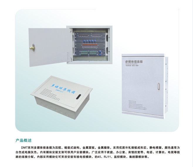 ◎多媒體網(wǎng)絡(luò)寬帶箱箱體采用優(yōu)zhi冷軋鋼板,表面噴塑處理。